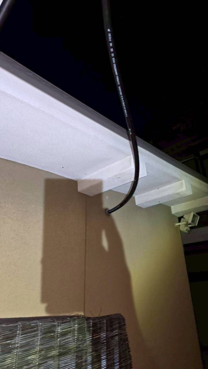 作業写真⑮:軒先から新しいポリ管が引き込まれている(施工後・夜間)