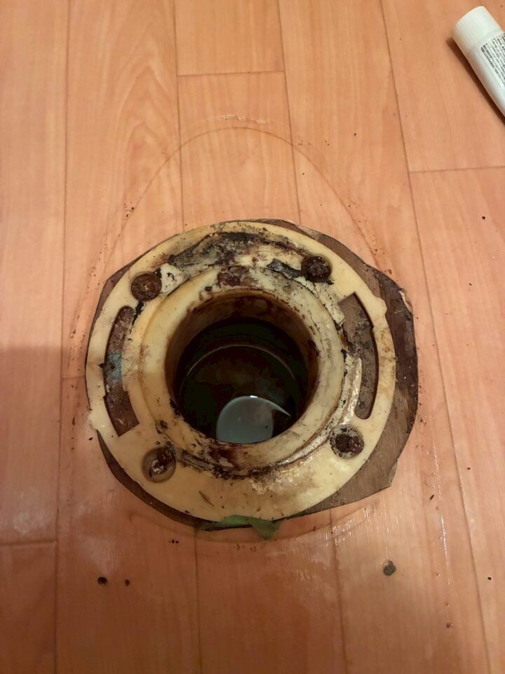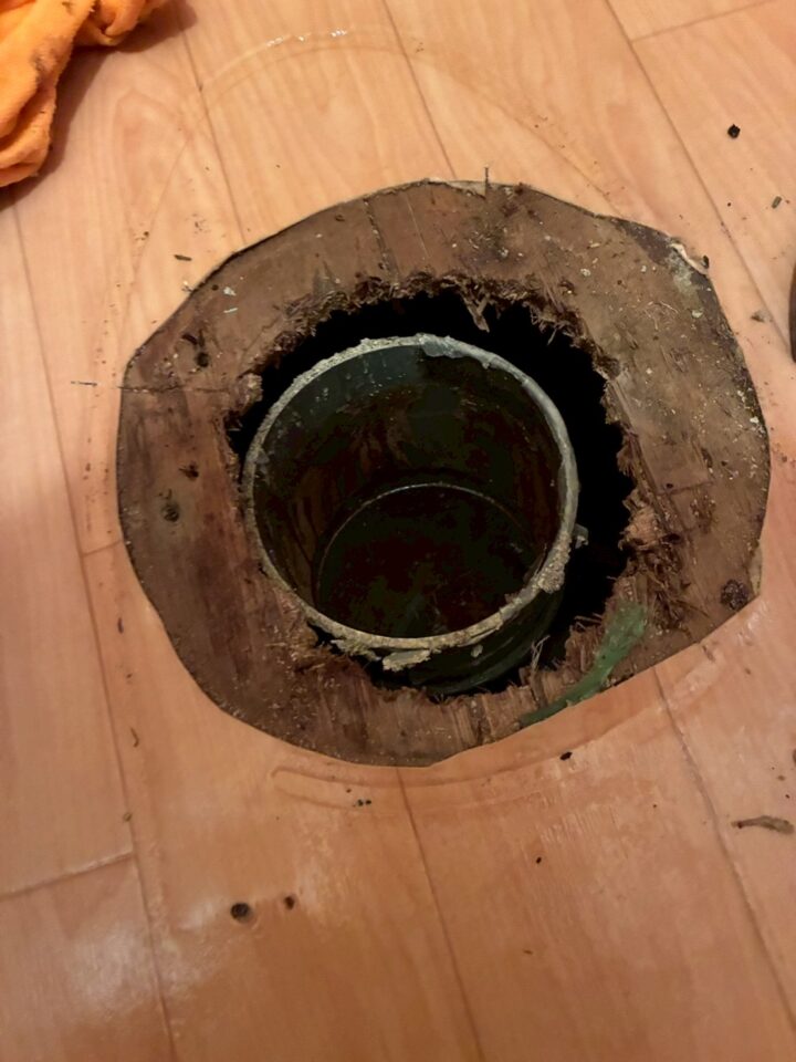 京都市北区トレイ交換事例既存トイレの取り外し~排水部分の確認・清掃