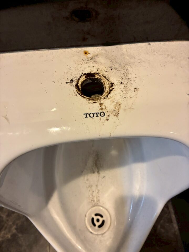 - 小便器の水が流れっぱなしで止まらない