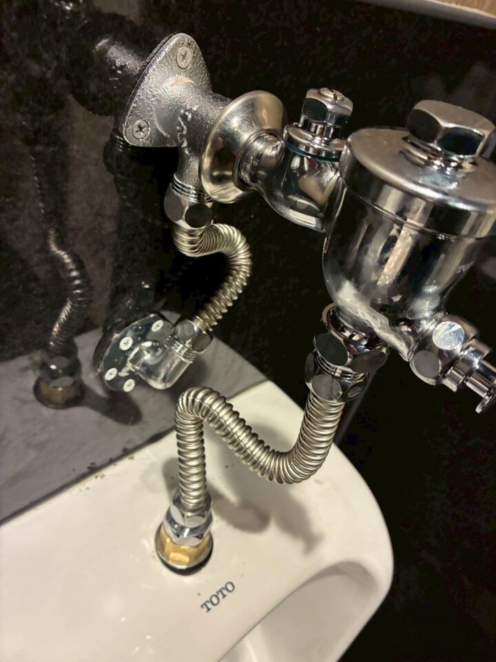 施工前:フラッシュバルブと給水管の状態